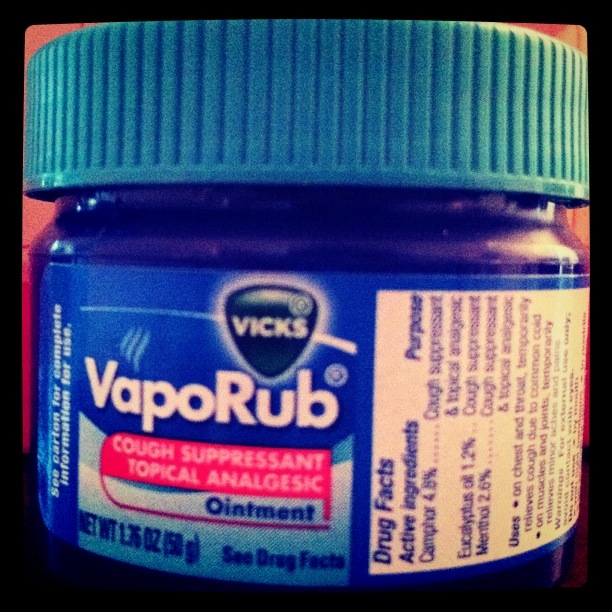 Vicks VapoRub ImageAugust 16, 2011August 16, 2011 Nick MomrikLeave a comment A runny nose doesn’t stand a chance when VapoRub is around. I bet the smell makes a great mosquito repellant as well. Share thisTweet Click to email a link to a friend (Opens in new window) Email Like Loading... Related