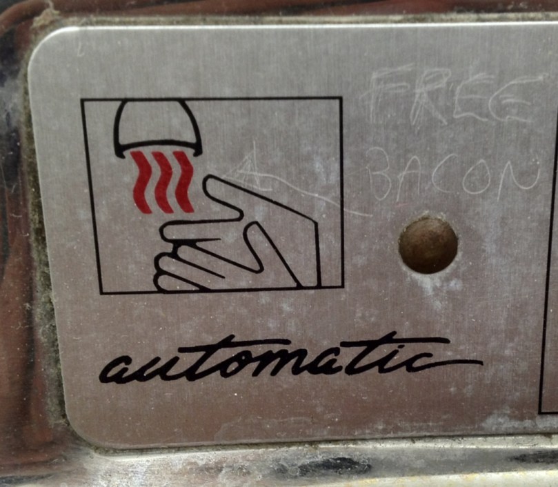 Free Bacon ImageJanuary 1, 2012January 1, 2012 Nick MomrikLeave a comment Someone scratched “free bacon” into the hand dryer in a Family Express gas station in Indiana. I wish! Share thisTweet Email a link to a friend (Opens in new window) Email Like Loading... Related