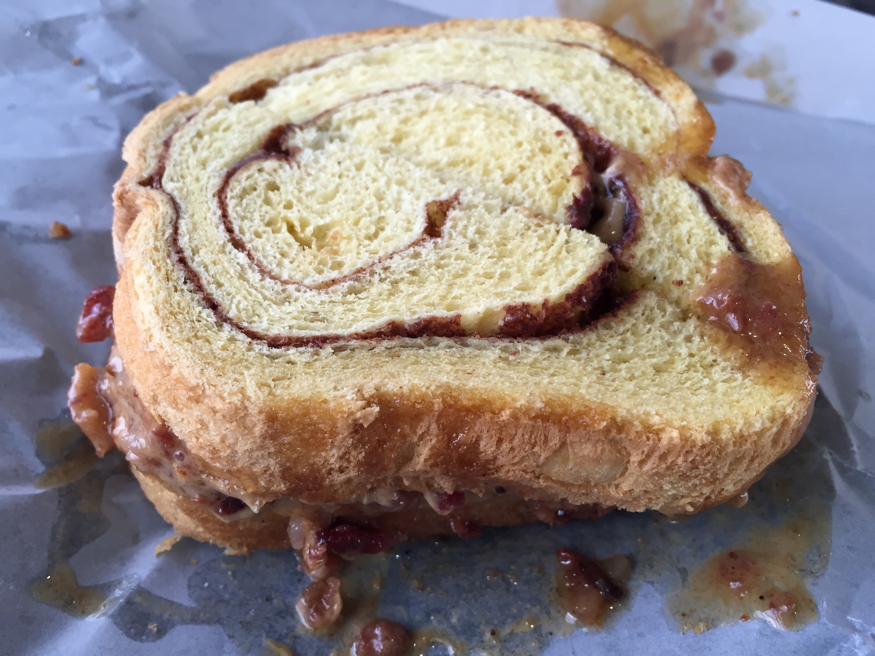 “The Exception” ImageDecember 7, 2014 Nick MomrikLeave a comment PB, bacon, and honey on cinnamon swirl. Share thisTweet Email a link to a friend (Opens in new window) Email Like Loading... Related