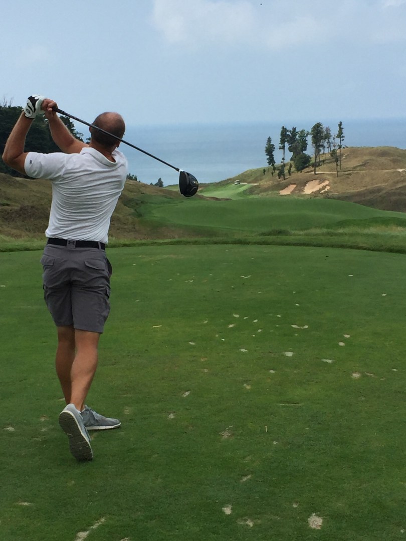 My favorite holes were probably 11, 12, and 13, which are all along Lake Michigan. I was surprised at how little the wind affected us. We had to adjust a lot more the day before when we played the South Course. This place is really something you have to see for yourself. It seemed like every time we turned a corner or come up over a hill we were in awe of the view. The course layout was fun, challenging, and had a good mix of directions and elevation changes. I don’t remember ever feeling like something was a gimmick.
