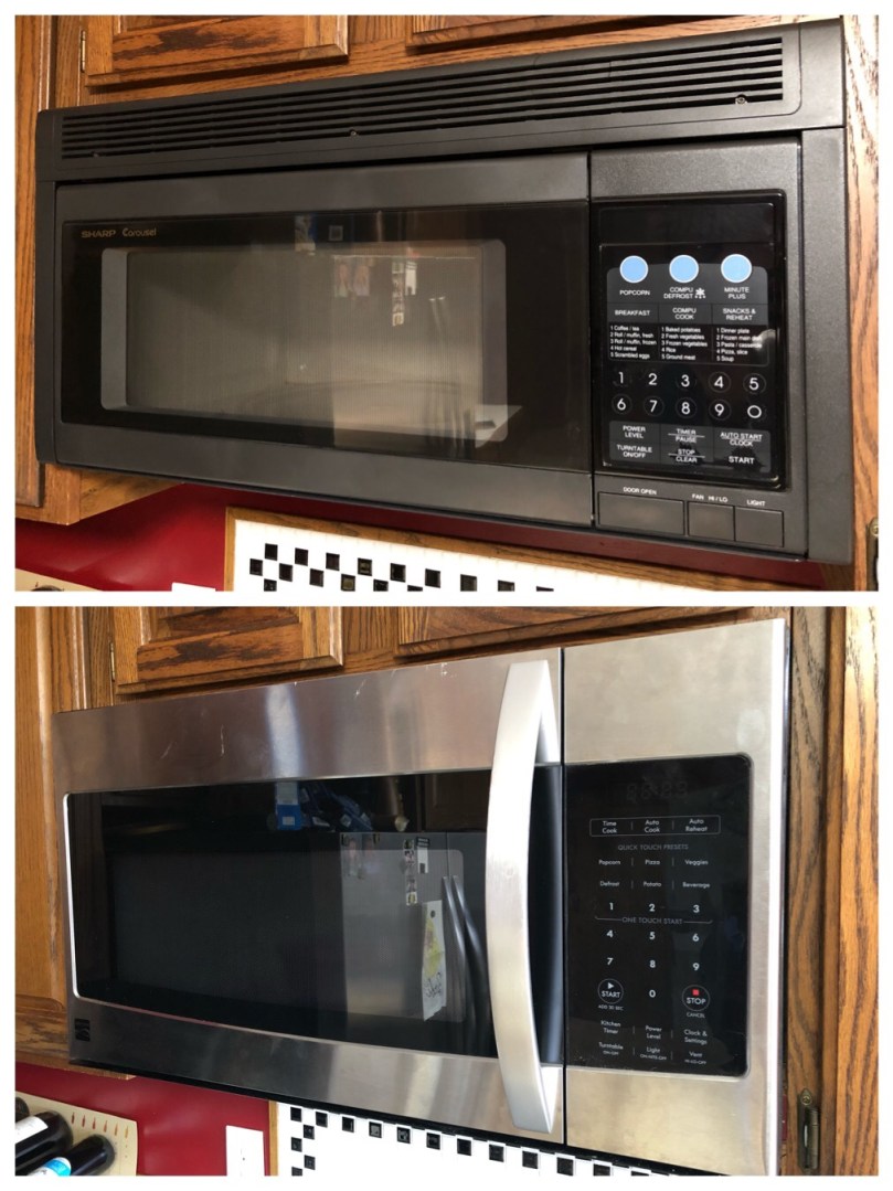 I was given a “newer” microwave and installed it yesterday. Here’s the before and after…
