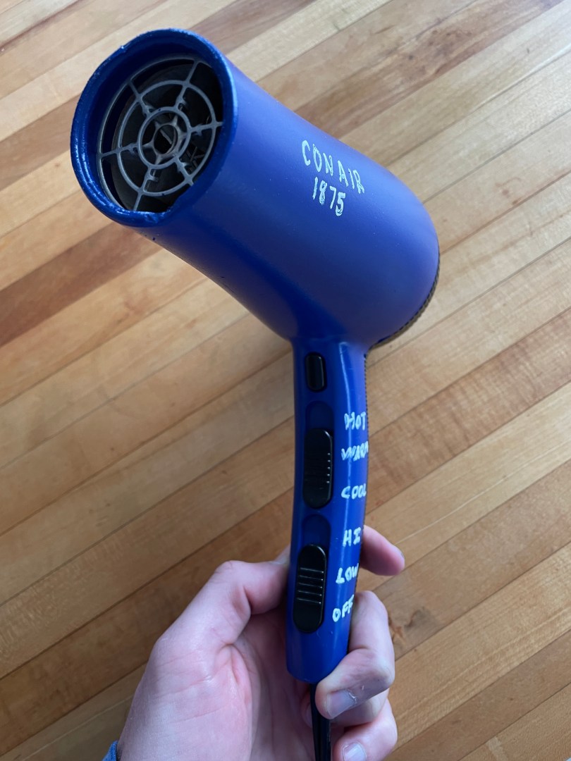 My newest tool isn’t one you’d usually think of for a workshop. When B was getting a new blow dryer for her bathroom I asked if I could have her old one. It was dark pink and caked with makeup, but I saw potential. After a simple disassembly, some cleaning, and a new paint job it’s new again.