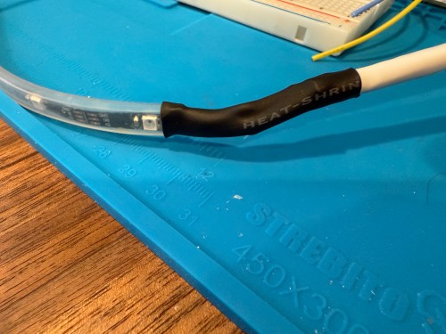 I could show a bunch of data on the screen and the PyPortal has a touchscreen, so I could display buttons for triggering things around the house. The device also has connectors for doing GPIO, so I got the idea of adding an LED strip, which I could use for notifications. I even had a meter long strip of Adafruit Mini Skinny NeoPixels I had bought in 2017 and never touched that would be perfect. I needed to buy a 2.0mm JST PH Connector kit in order to make a wire that would connect to the pack of the PyPortal. I ended up using a piece of Cat6 cable, even though I only needed 3 of the 8 wires inside.