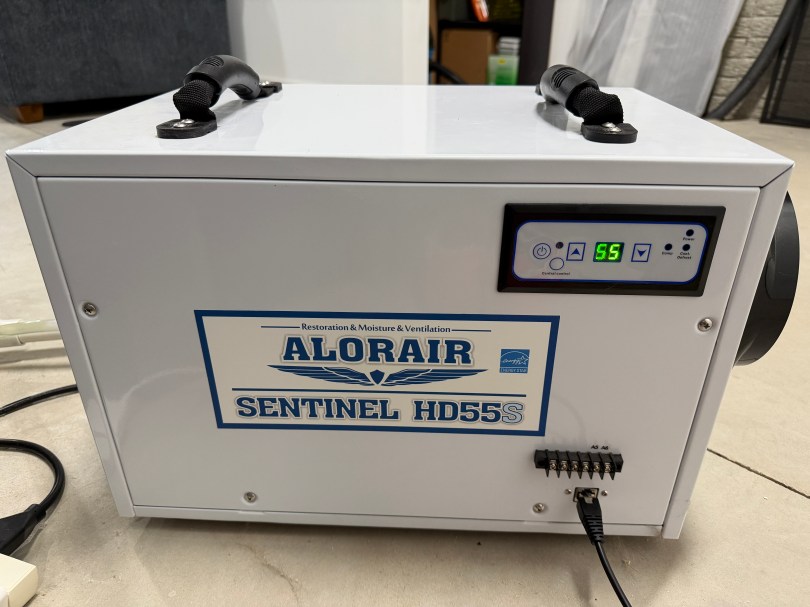 Working from excellent information in a Home Assistant forum thread, I put together an ESPHome device to read information from and send commands to our AlorAir Sentinel HD55S Dehumidifier.