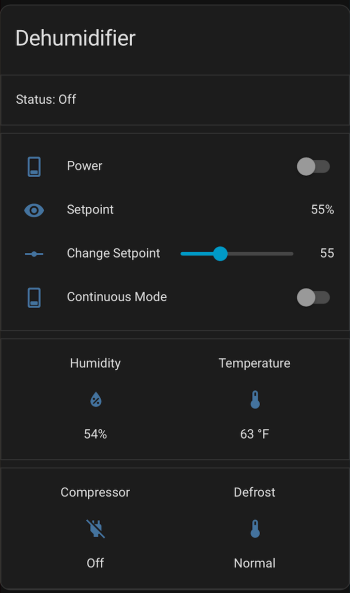Try to toggle the power and change the setpoint. If it’s working, the dehumidifier should respond. Good luck! If all is working, I suggest adjusting your logging level to WARN. There is some stuff in the YAML to alert if the unit sends data that isn’t recognized, because there might be flags or statuses not implemented.