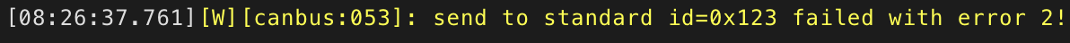 If you see errors after the send or don’t receive messages back, try changing the bit_rate from 125 to 50, install, and recheck the logs.