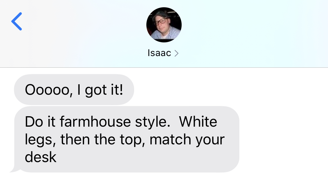All the sanding! I went through 80, 120, 180, and 220 grits on the top and sides of the desk.