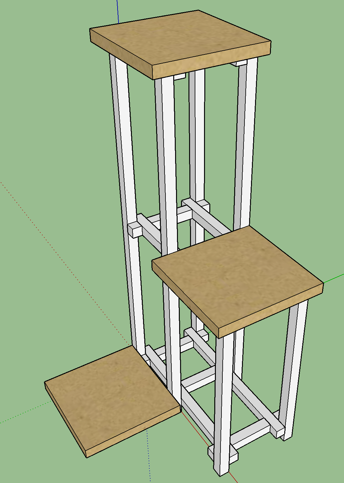 Due to the base’s cross support, there’s was limited depth for drawers, but there was width for them. I took some old kitchen cabinet drawers, chopped them in half, and closed them up with scrap plywood.