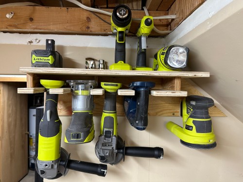 I’ve been keeping my Ryobi cordless 18v tools on some shelves on a wall next to a drain pipe.