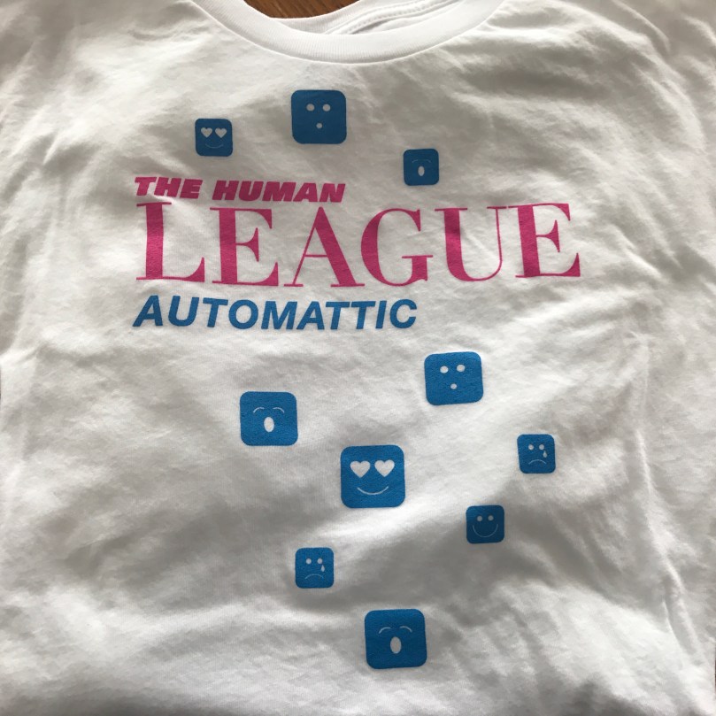 I’ve held a variety of roles at the company and for the last year and a half I’ve been working as a developer on our Human Resources team. Last year we rebranded ourselves as “The Human League” and our designer created a cool 80s style theme for our private internal blog. Last week I got a new t-shirt to match. 🙂